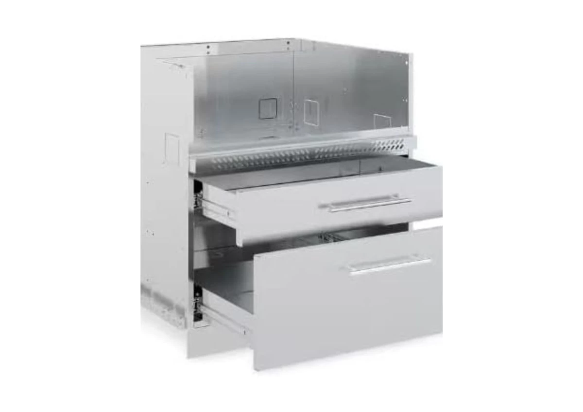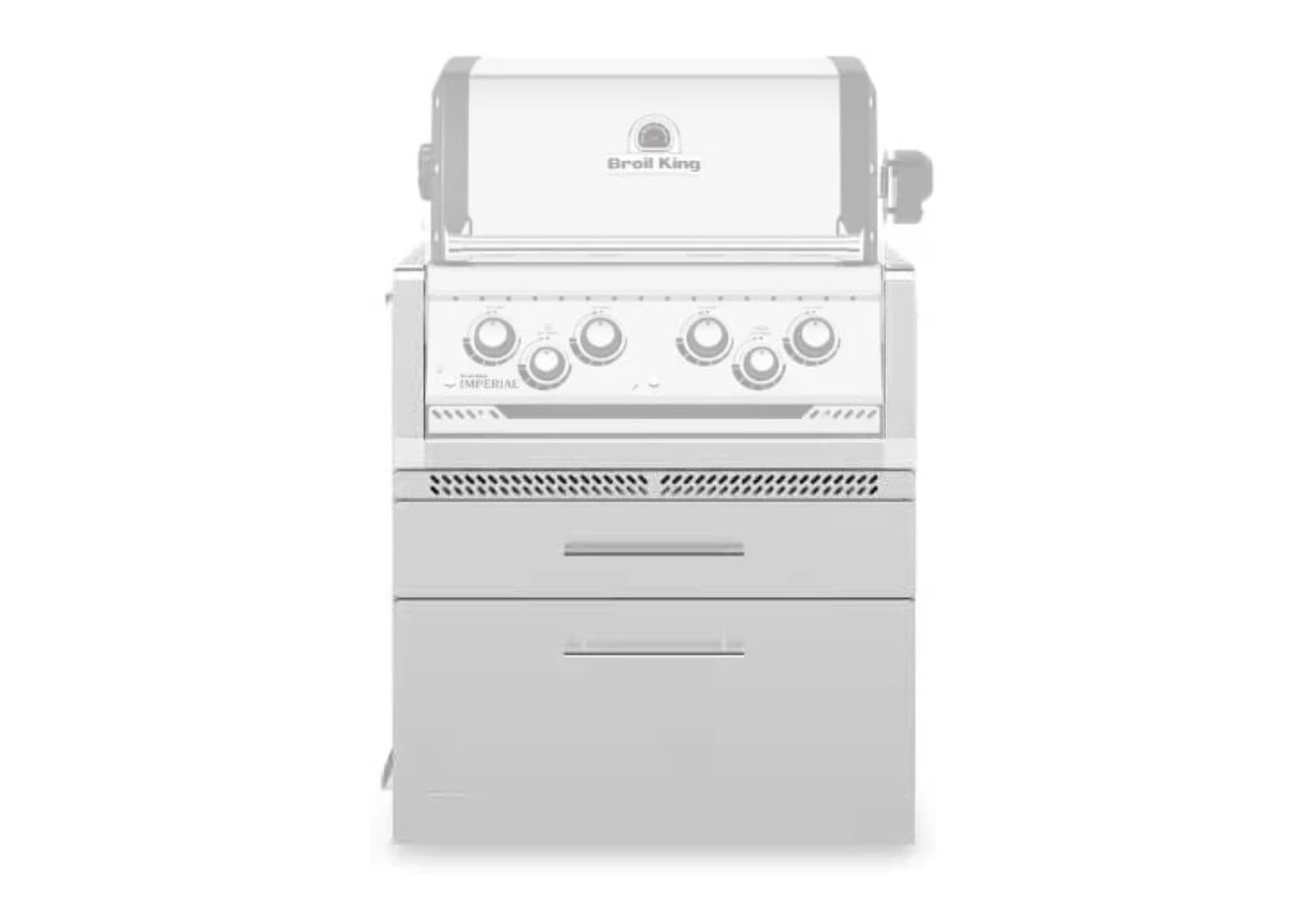 A Broil King rozsdamentes acélból készült beépített szekrényt úgy tervezték, hogy kiegészítse az igényes kültéri konyhákat, funkcionalitást és stílust egyaránt kínálva. A prémium minőségű, 304-es rozsdamentes acélból készült szekrény tartós kivitelben készült, és az elegáns megjelenés érdekében rúgólapokkal ellátott, tartós konstrukcióval rendelkezik. Négy rozsdamentes acélból készült fiókot tartalmaz (két kis és két nagy fiókot), amelyek ideálisak a grillezési kiegészítők tárolására, és a szilárd alapot stabil gyanta lábszintezők támasztják alá.
