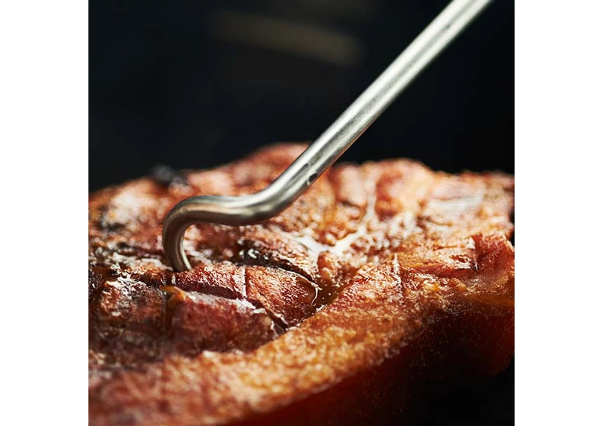 A Kamado grillek különösen alkalmasak nagyobb húsrészek egyben sütésére, füstölésére, de ezeket a húsokat nem mindig könnyű mozgatni. Ebben jelent nagy segítséget a húsforgató horog, mely éles, kampószerű végénél fogva beakasztható a húsba, így a páctól vagy szósztól sikamlós felszínű étel nem csúszhat ki a kézből. A fogóknak vagy lapátoknak már túl nagy és nehéz hússzeletek pakolásához hasznos eszköz a rozsdamentes acélból készített horog, mely kényelmesen megragadható, fogásbiztos (rovátkákkal ellátott) műanyag borítással érkezik.
