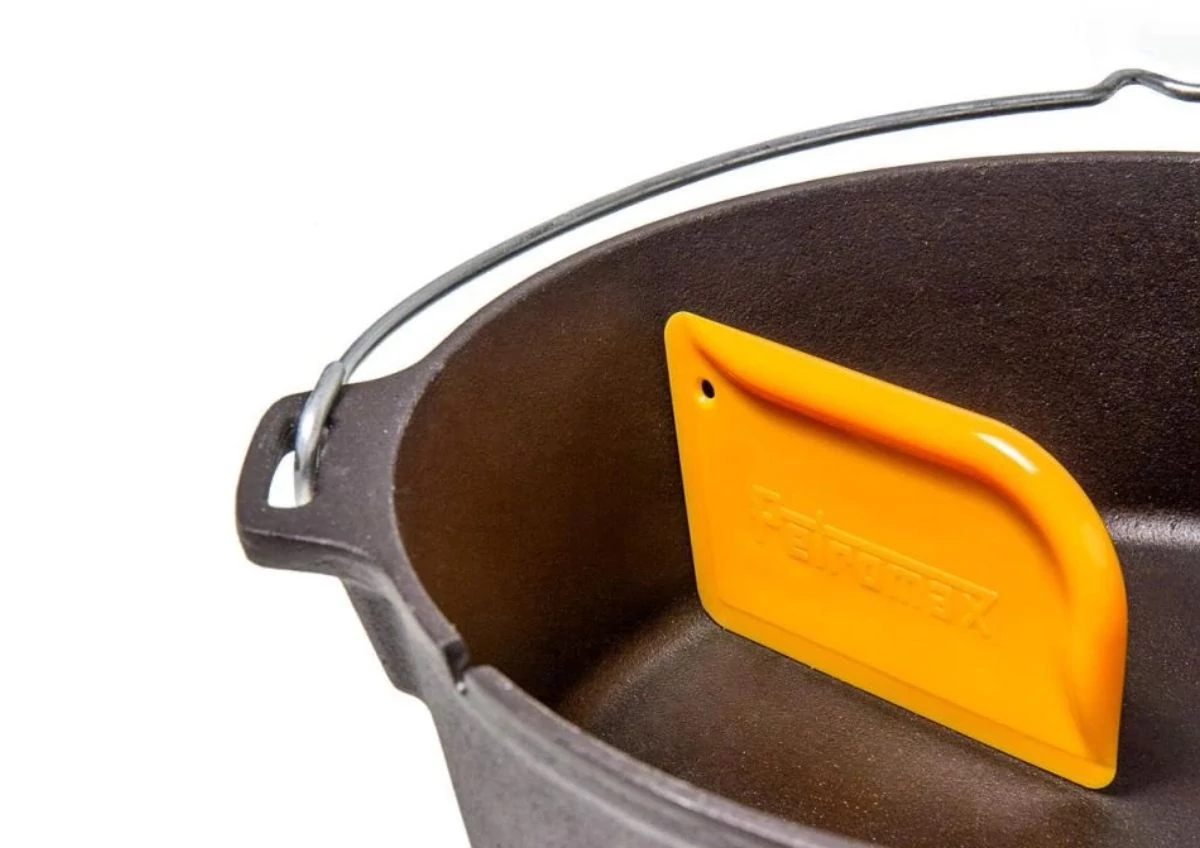 A Petromax kaparó Dutch Ovenhez és serpenyőkhöz kaparó tökéletesen illeszkedik a Dutch Oven és serpenyők belsejéhez, hatékonyan eltávolítva a lerakódásokat anélkül, hogy károsítaná a felületet. Praktikus és tartós kiegészítő.