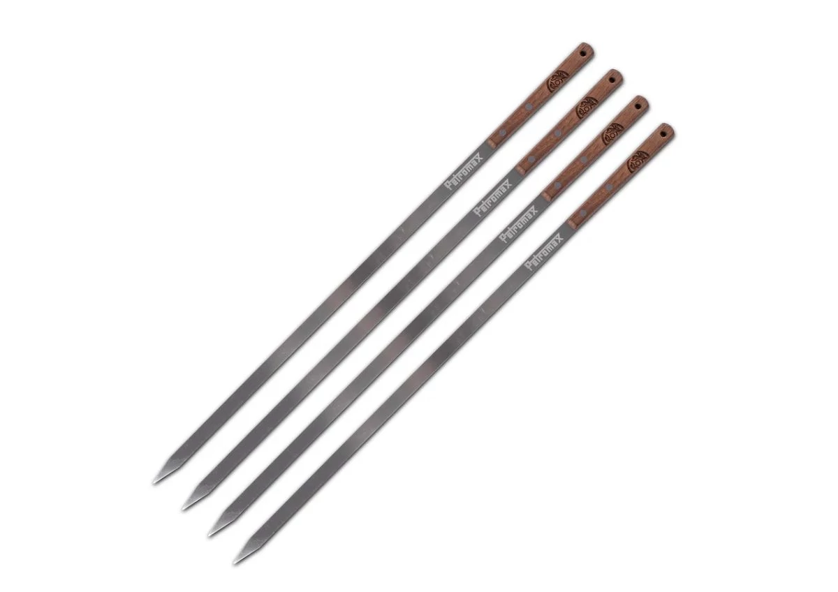 A Petromax nyárs (egyenes ágakkal, 2 db) egyenes ágú nyárs 2 darabos készletben, ideális húsok vagy zöldségek sütéséhez nyílt tűz felett.