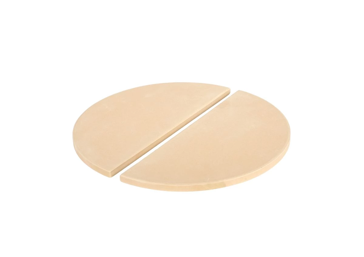Hőterelő - 2 db (fél) – Kiváló minőségű hőterelők, amelyek biztosítják az egyenletes hőeloszlást a Kamado sütőkben. Tökéletes kiegészítő hosszú, alacsony hőmérsékleten történő sütéshez. Kamado Chef 19-es modellekhez.