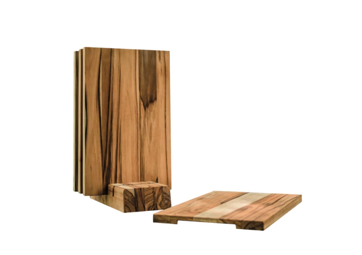 Az OFYR Vágódeszka szett négy darab kiváló minőségű vágódeszkát tartalmaz, melyek ideálisak a különböző alapanyagok előkészítéséhez és szeleteléséhez. A deszkák tartós, ellenálló anyagból készültek, biztosítva a hosszú távú használatot és a kényelmes, higiénikus munkavégzést az OFYR grill mellett.