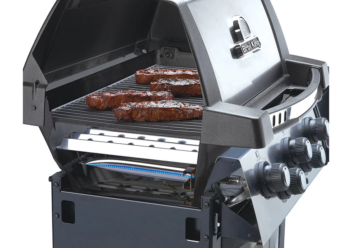 A Broil King Signet grilljeihez készített öntöttvas sütőrács szett két darab masszív, kétoldalú rácsot kínál a vásárlóknak. A rács kinézetében nagyon hasonlít a Monarch szériához gyártott darabokra, de méretük eltér, így vásárlásnál különösen figyelni kell, hogy a megfelelő grillhez a megfelelő rácsot válasszuk. Ez a sütőrács szett a Signet grillek 20-as, 40-es és 90-es gázgrilljeihez is passzol, a többivel azonban nem kompatibilis. A kiváló alapanyagokból gyártott tartós rácsozat mindkét oldala használható. A V-alakú rácsok egyik oldalon összegyűjtik a húslét, míg a másik oldalon – az élesedő csúcsok – hagyják lecsöpögni azt, cserébe viszont kivételesen csinos grillmintázatot hagynak az ételen.