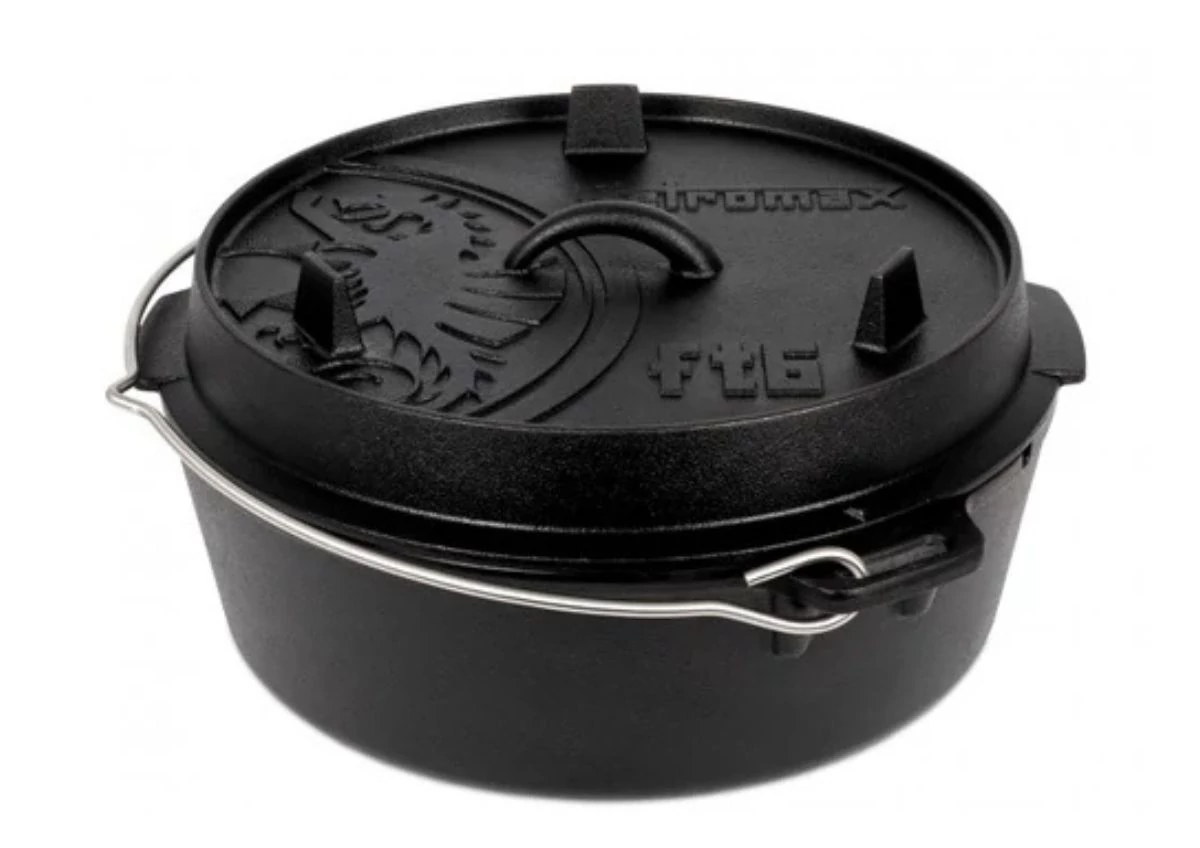 A Petromax Dutch Oven, lapos aljú öntöttvas lábas (5,5 liter, Ø 30 cm) lapos aljú öntöttvas lábas minden típusú tűzhelyen használható, beleértve az indukciósat is. Az előkezelt felület nem ragad, a 5,5 literes űrtartalom pedig tökéletes közepes adagokhoz, például chilihez, kenyérhez vagy desszertekhez.